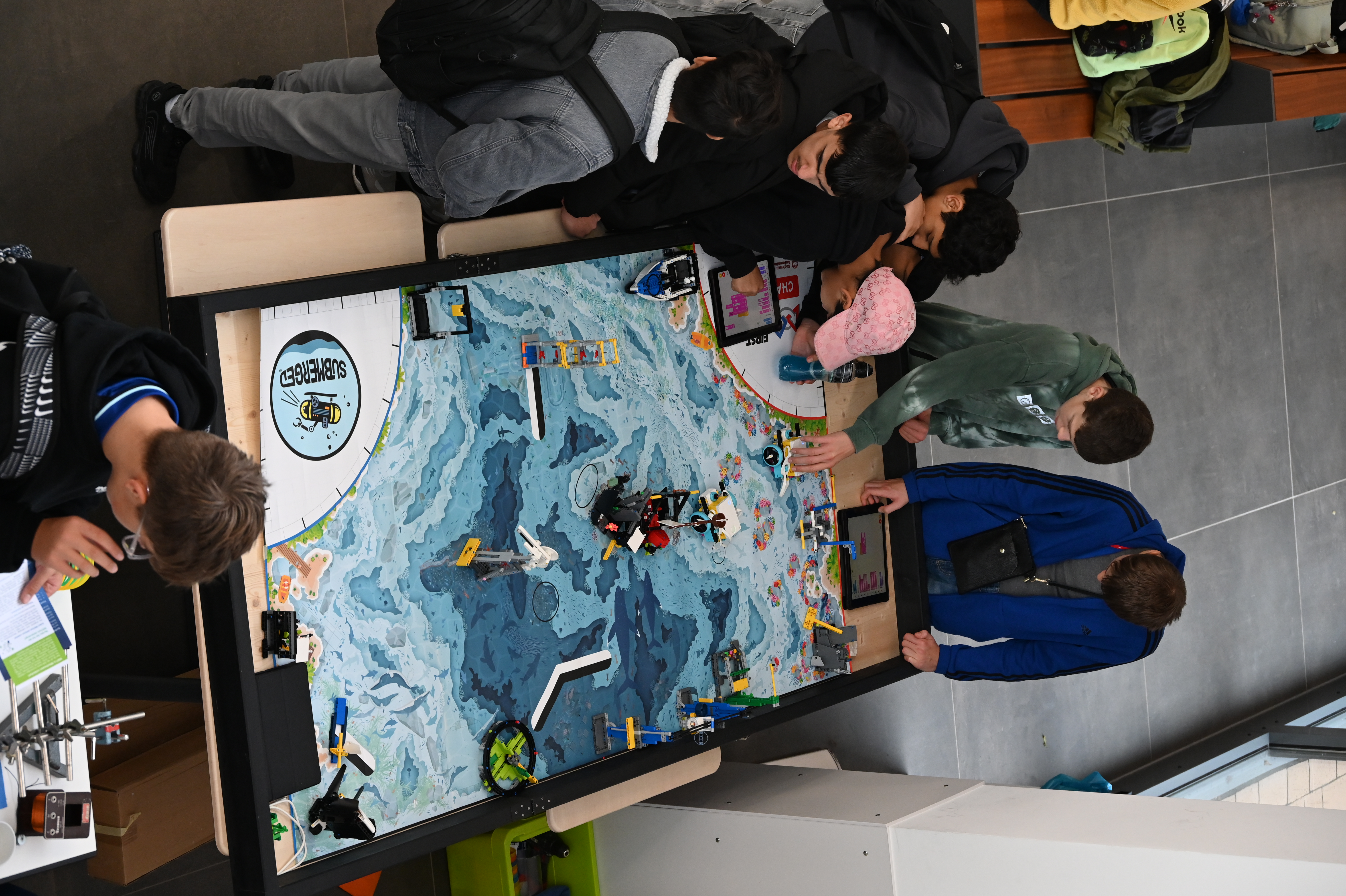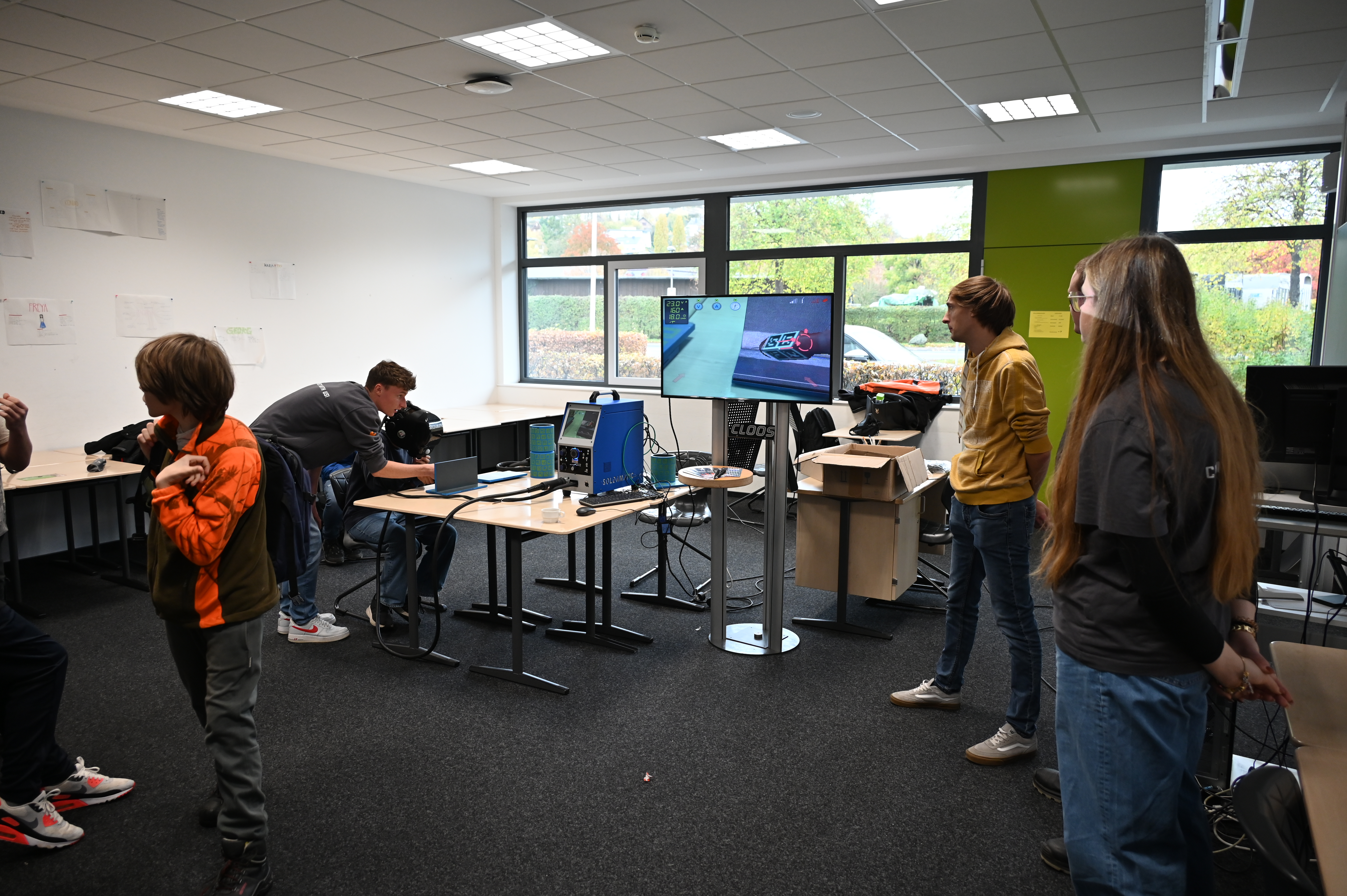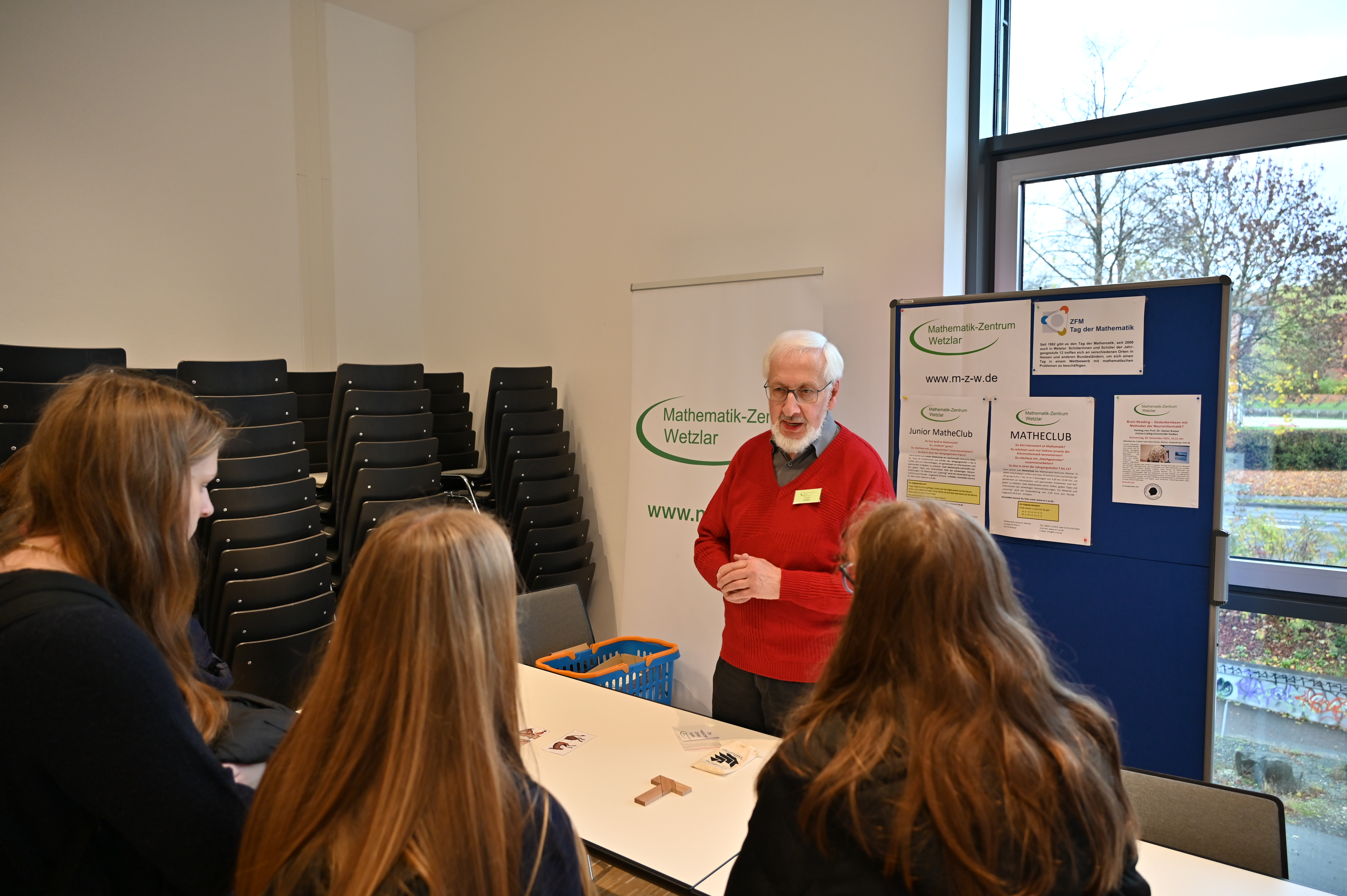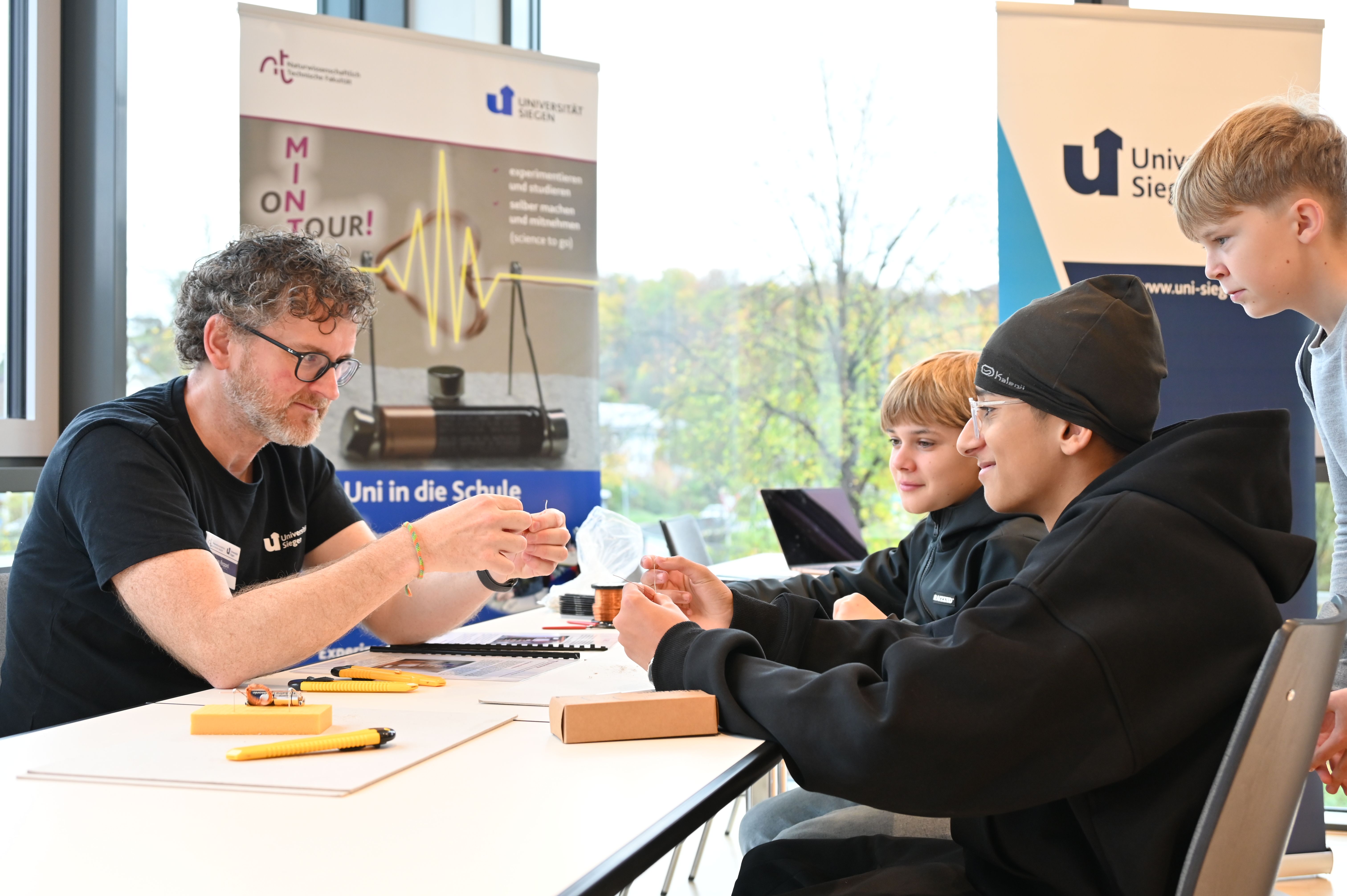 Die zahlreichen Mitmachangebote luden zum Ausprobieren ein. Im Atrium konnte man am Stand des Mathematik-Zentrums Wetzlar an mathematischen Rätseln knobeln, mit den Robotern des Gymnasiums Johanneum Herborn sprechen, an der Universität Siegen einen eigenen Elektromotor bauen, seine Geschicklichkeit bei Cohline am „Heißen Draht“ prüfen und am Stand der Isabellenhütte sein Wissen über Metalle unter Beweis stellen. Auch in der Eingangshalle gab es viel zu entdecken. Am Stand des Schülerforschungszentrums Mittelhessen wurden Lego-Roboter programmiert, der Verein Deutscher Ingenieure (VDI) informierte über 3D-Druck, bei Wendel-Email durfte emailliert und am schuleigenen Stand mikroskopiert werden. Elektrotechnik zum Anfassen boten zudem die EAM, Loh-Services und Carl Cloos Schweißtechnik. Ein besonderer Anziehungspunkt war der große Stand der Technischen Hochschule Mittelhessen, an dem die Schülerinnen und Schüler ihren eigenen Game-Controller bauen und programmieren konnten.