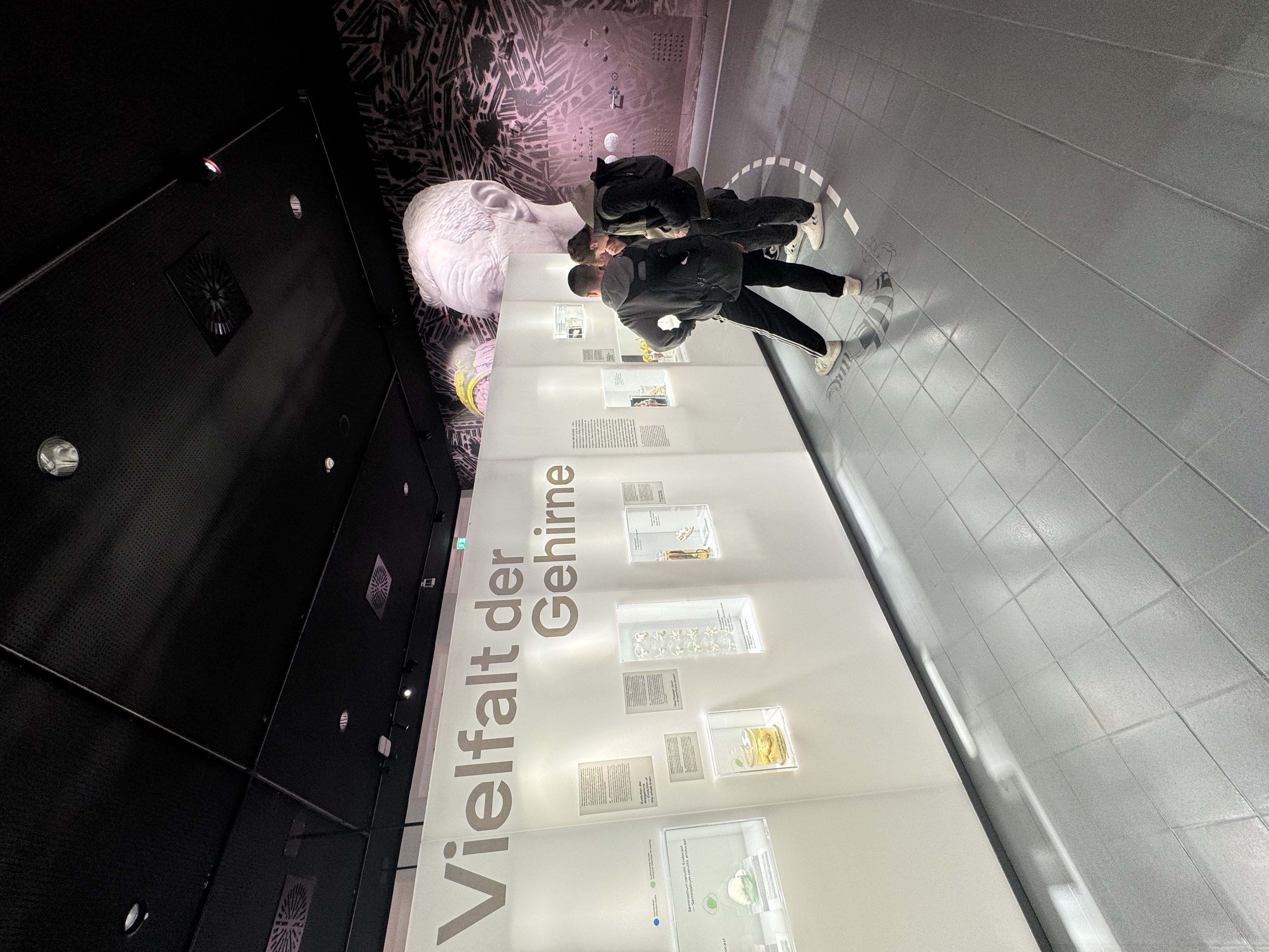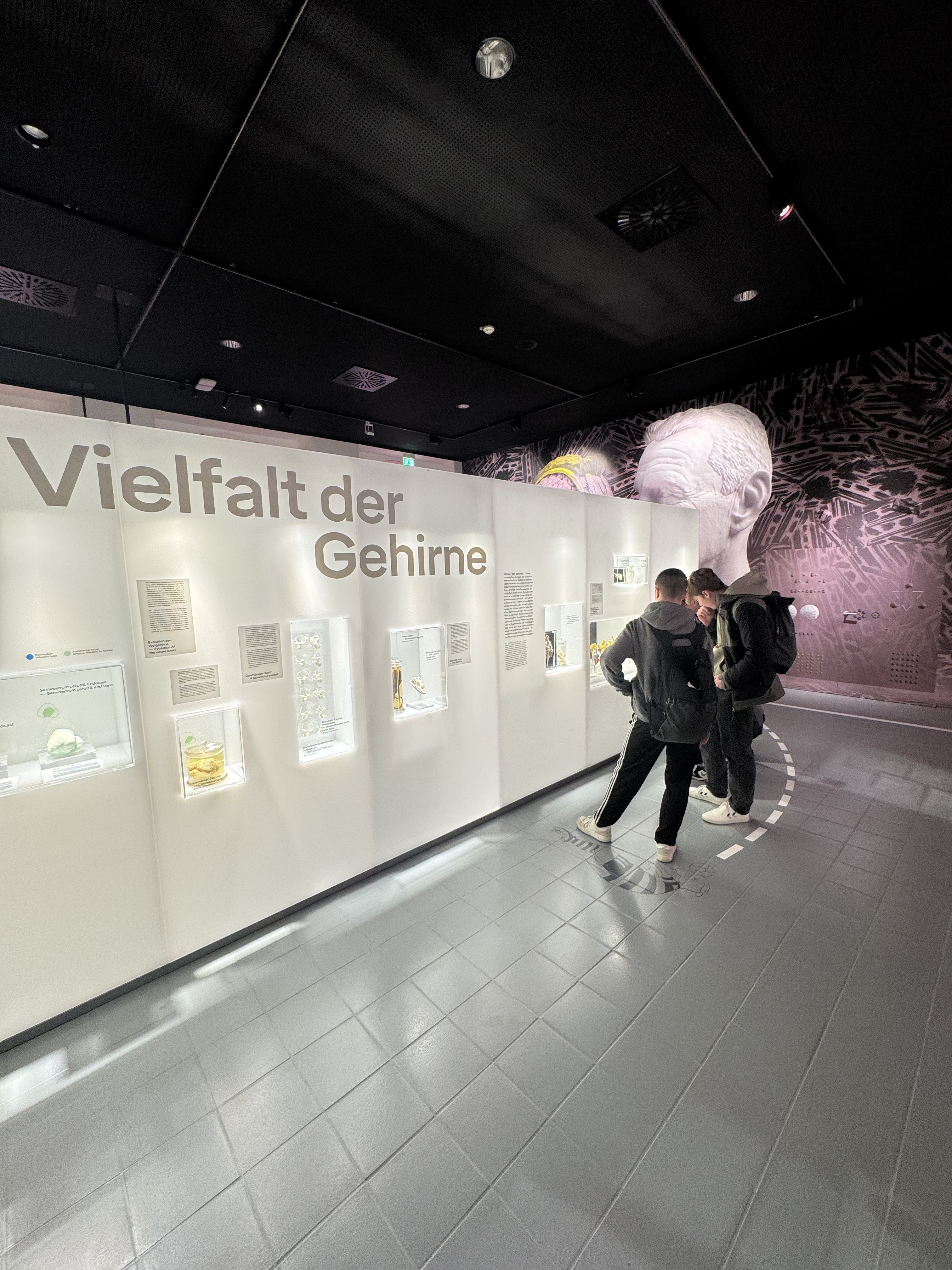Im Rahmen von Führungen erhielten die Schülerinnen und Schüler spannende Einblicke in aktuelle Unterrichtsinhalte. So wurden beispielsweise Selektionsfaktoren im Kontext der Evolution (Unterrichtsinhalt Q4) anschaulich erläutert. Darüber hinaus konnten auch zentrale, abiturrelevante Aspekte aus der Ökologie (Q2) vertieft werden. Ein weiteres Highlight stellte die aktuelle Sonderausstellung „Gehirne“ dar, die zahlreiche Inhalte aus der Neurobiologie (Q3) aufgriff und eindrucksvoll veranschaulichte.